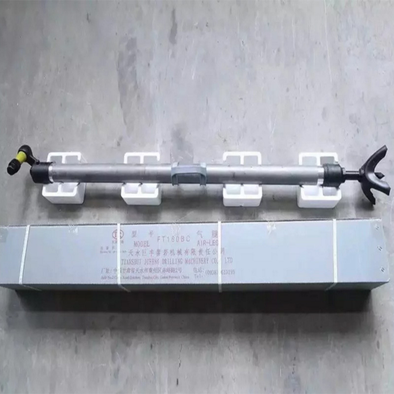YT27 rock drill is matched with FY250 oil injector and FT160A (or FT160B, FT160C) air leg, which can carry out wet rock drilling on medium and hard rocks, and drill horizontal and inclined blast holes; The air leg can also be used on a trolley after the air leg is removed.
